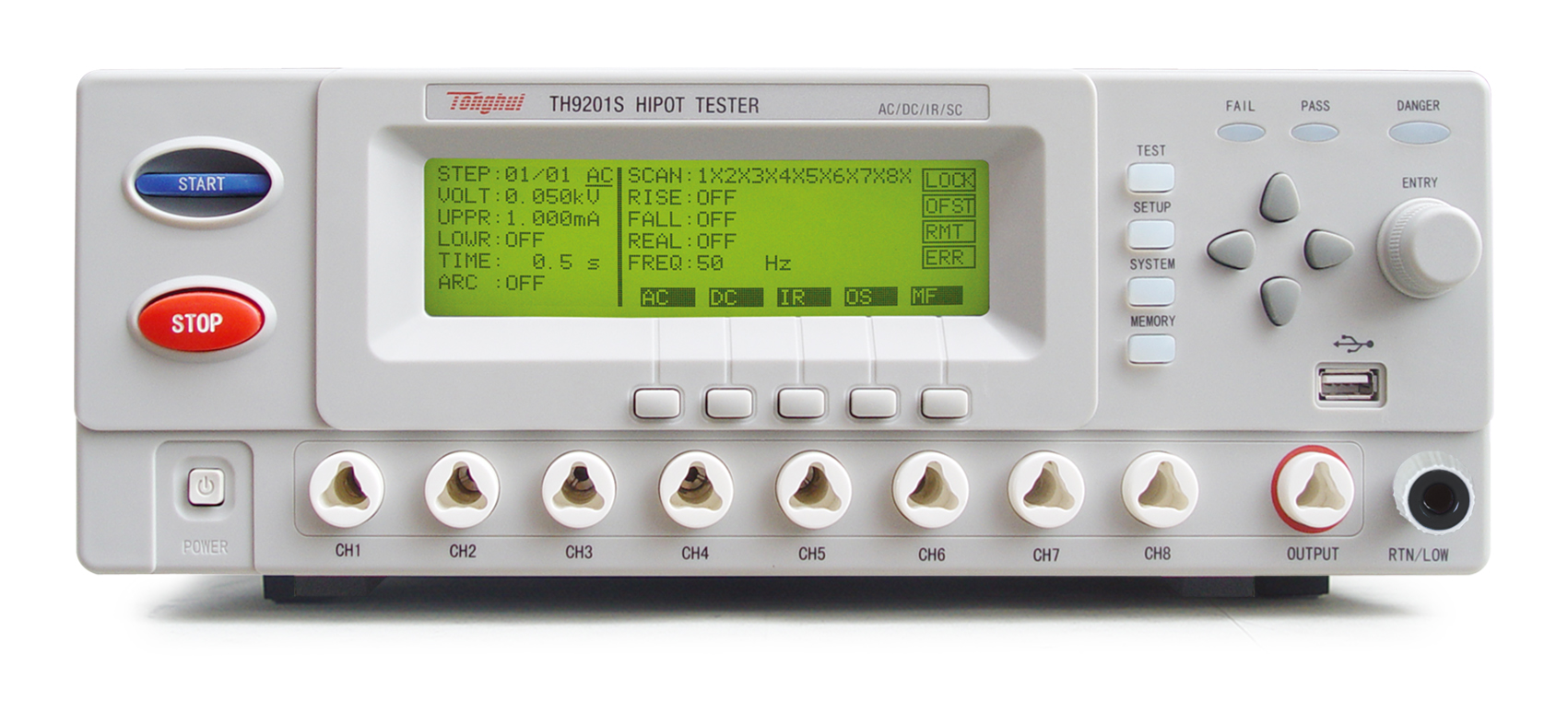 ■?TH9201S八通道交直流耐壓絕緣測試儀是一種為客戶精巧設計的電氣安規(guī)測試儀器。精簡和緊湊的結構、成熟的技術。全新的結構和操作界面使操作和使用都更簡便。包含更多實用的功能。TH9201S產品可廣泛應用于變壓器、設備、元器件特別是繞線元件的安全檢查。